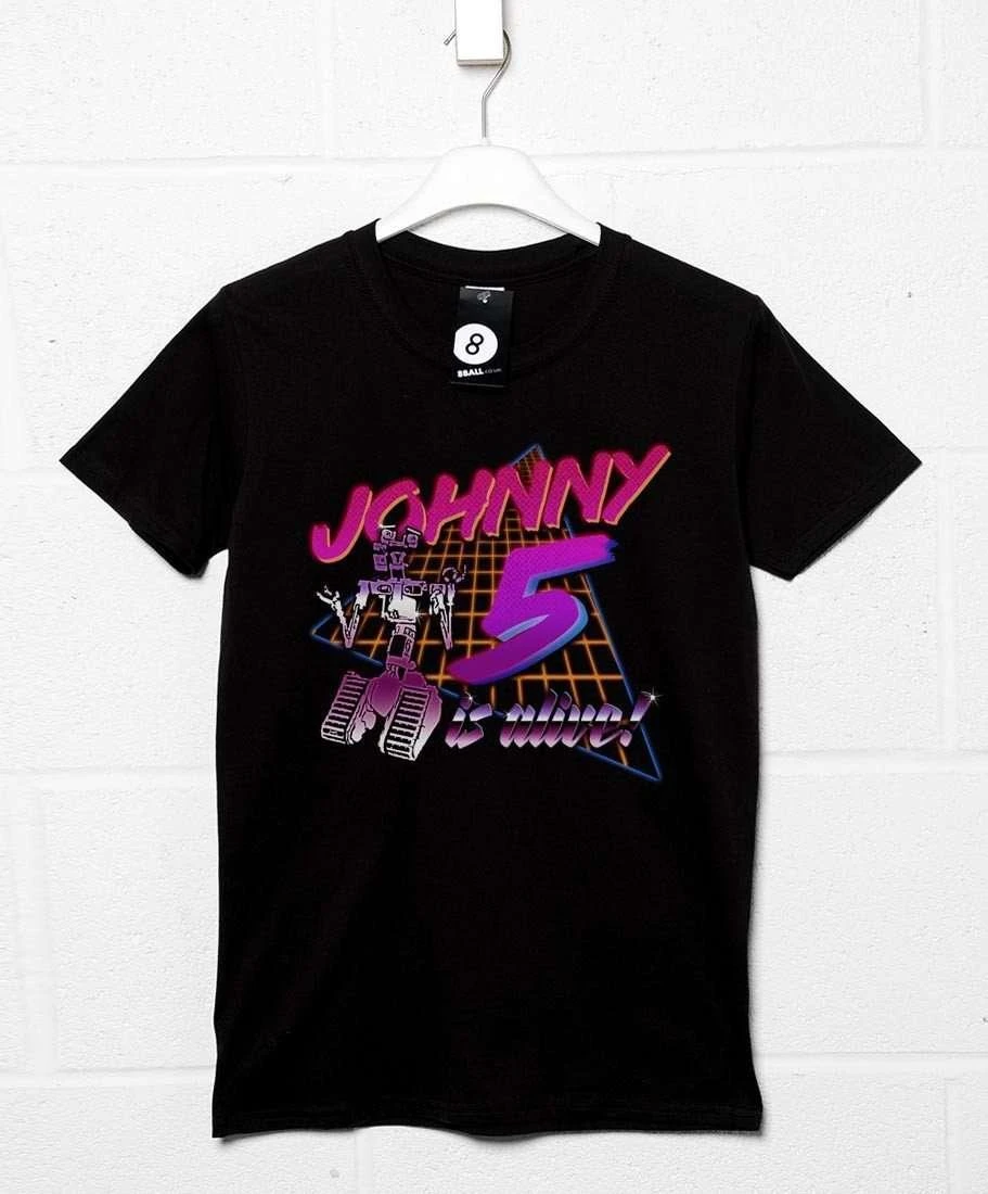 Bringing back the 80’s vibe is this Johnny 5 t shirt. It really doesn’t get more retro than this, with the lovable robot presented in pinks and purples, along with his famous catchphrase “Johnny 5 is alive!” This is inspired by Short Circuit, not official.