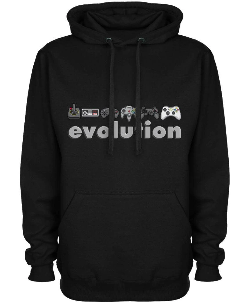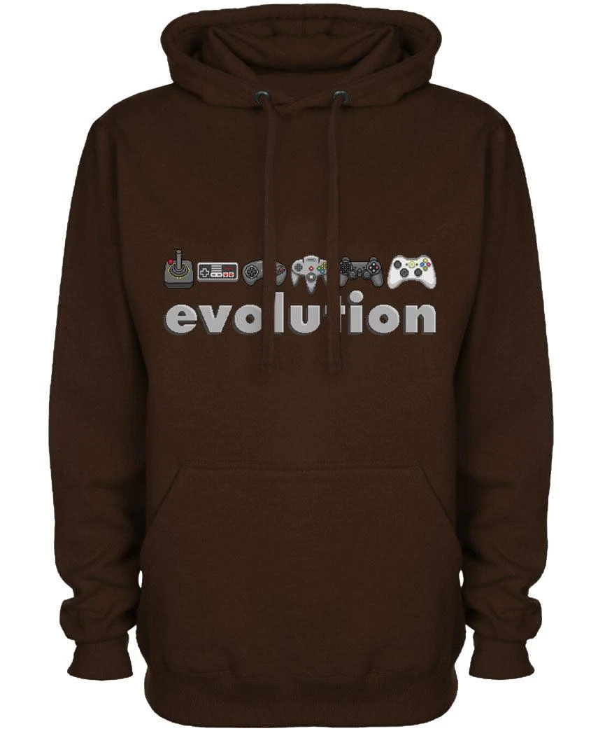 This unisex quality hoodie features an original design created with pixels in the style of retro video game graphics. It shows a progression of video game controllers from the early retro joystick through to modern game pads we are all familiar with today. Has the slogan “Evolution” underneath, also in a blocky, pixellated style. This is 80% Cotton, 20% Polyester, and has coloured draw chords, double lined hood, and a front pocket.