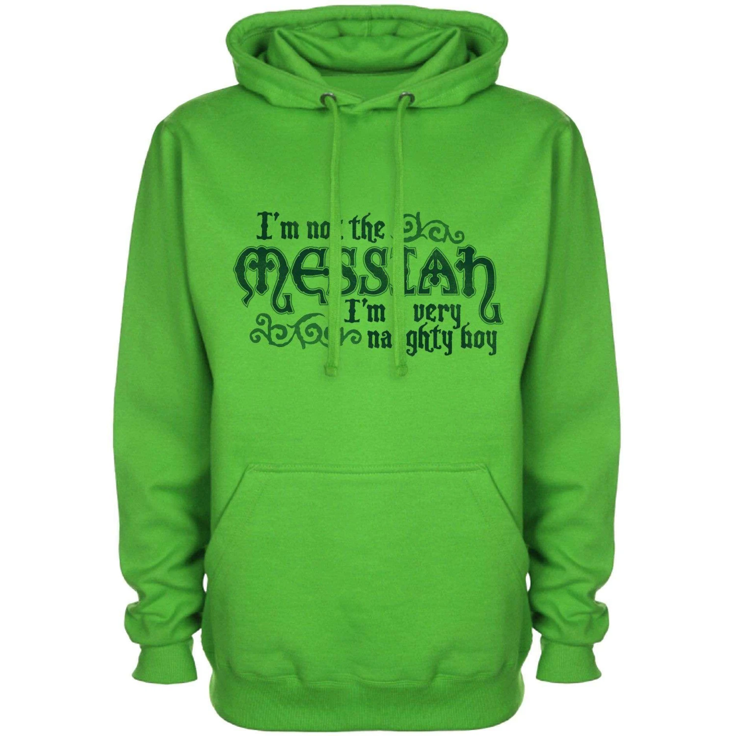 With this quality Life of Brian inspired unisex Hoody you can declare that like Brian you’re not the Messiah, you’re a very naughty boy! This is an 80% Cotton, 20% Polyester Life of Brian homage hoodie with self coloured draw chords and front pocket.