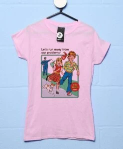 Steven Rhodes Let’s Run Away From Our Problems Womens Fitted T-Shirt