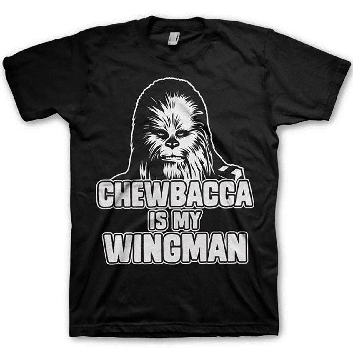 Now Han’s wingman can be your wingman with this brilliant Chewbacca is my Wingman Star Wars t-shirt. Featuring a two colour design of everyone’s favourite Wookiee (sorry Tarfful) with the block text slogan ‘Chewbacca is my Wingman’. This is a 100% officially licensed Star Wars t-shirt, printed on 100% cotton regular fit men’s shirts.