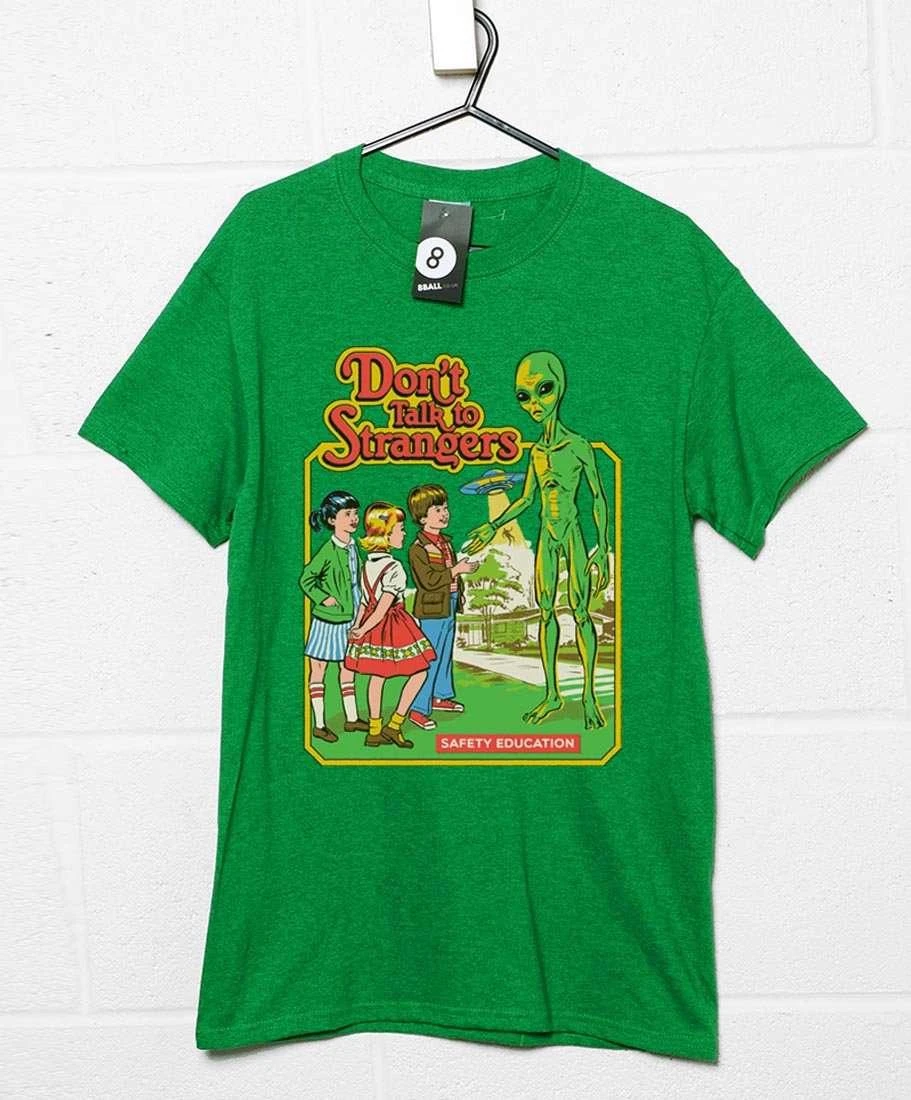 Your momma always told you not to talk to strangers and this t-shirt shows why. Sure, maybe you’ll end up with a great E.T. style pal, but it’s just as likely you’ll end up on a UFO being probed.
