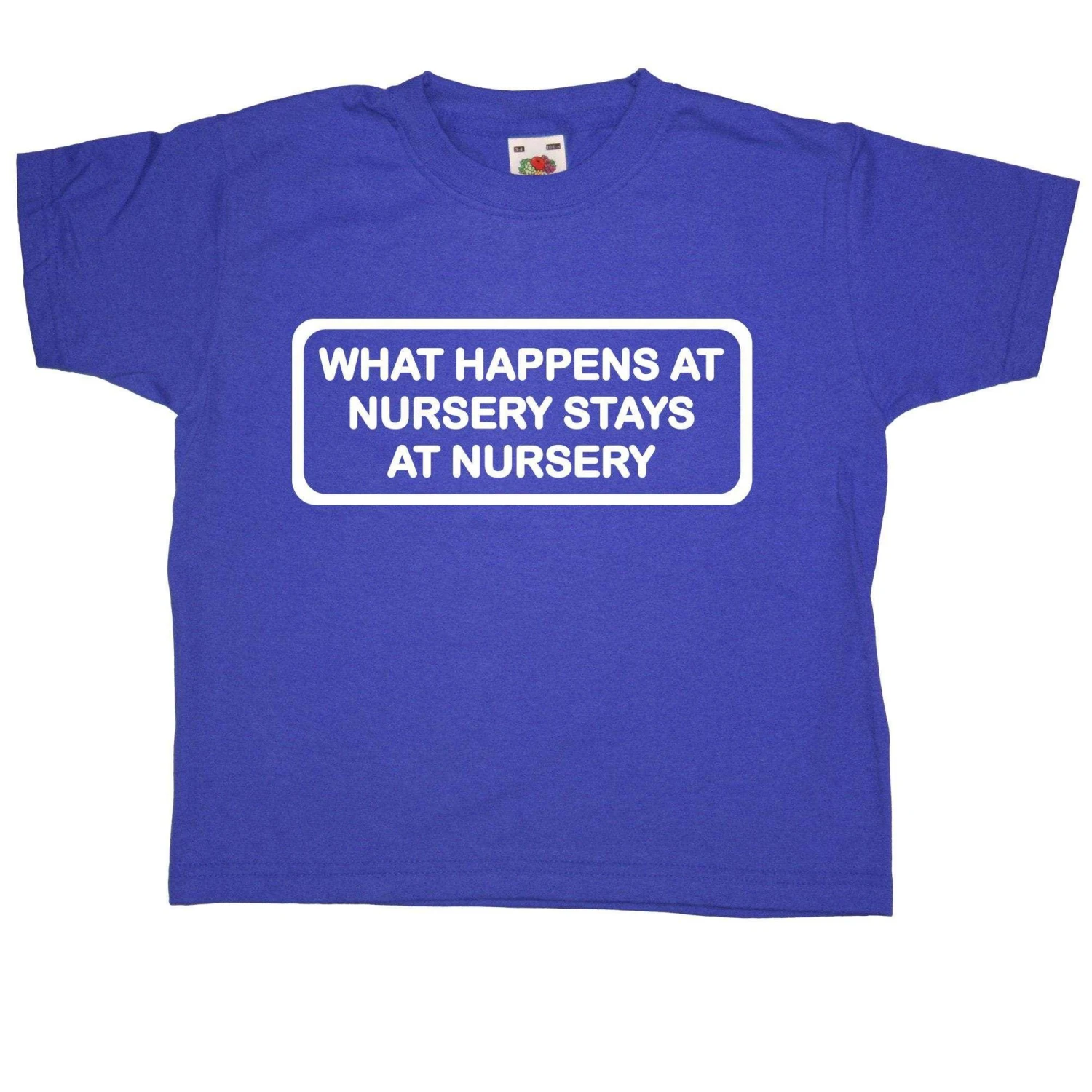 This funny slogan kids t-shirt features the slogan “What happens at nursery, stays at nursery.” Do you really want to know what they get up to when they’re not with you? Better to live in blissful ignorance! This is a 100% cotton childs slogan t-shirt.